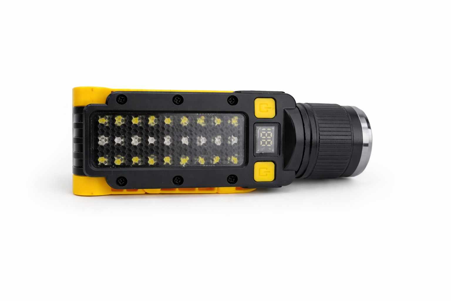 • Luz Lateral de Refracción (Modo Lámpara): 💡 Incluye un panel lateral con tecnología de refracción para una luz ambiental suave y potente. Es perfecta para iluminar una habitación completa, un campamento o como luz de trabajo manos libres.