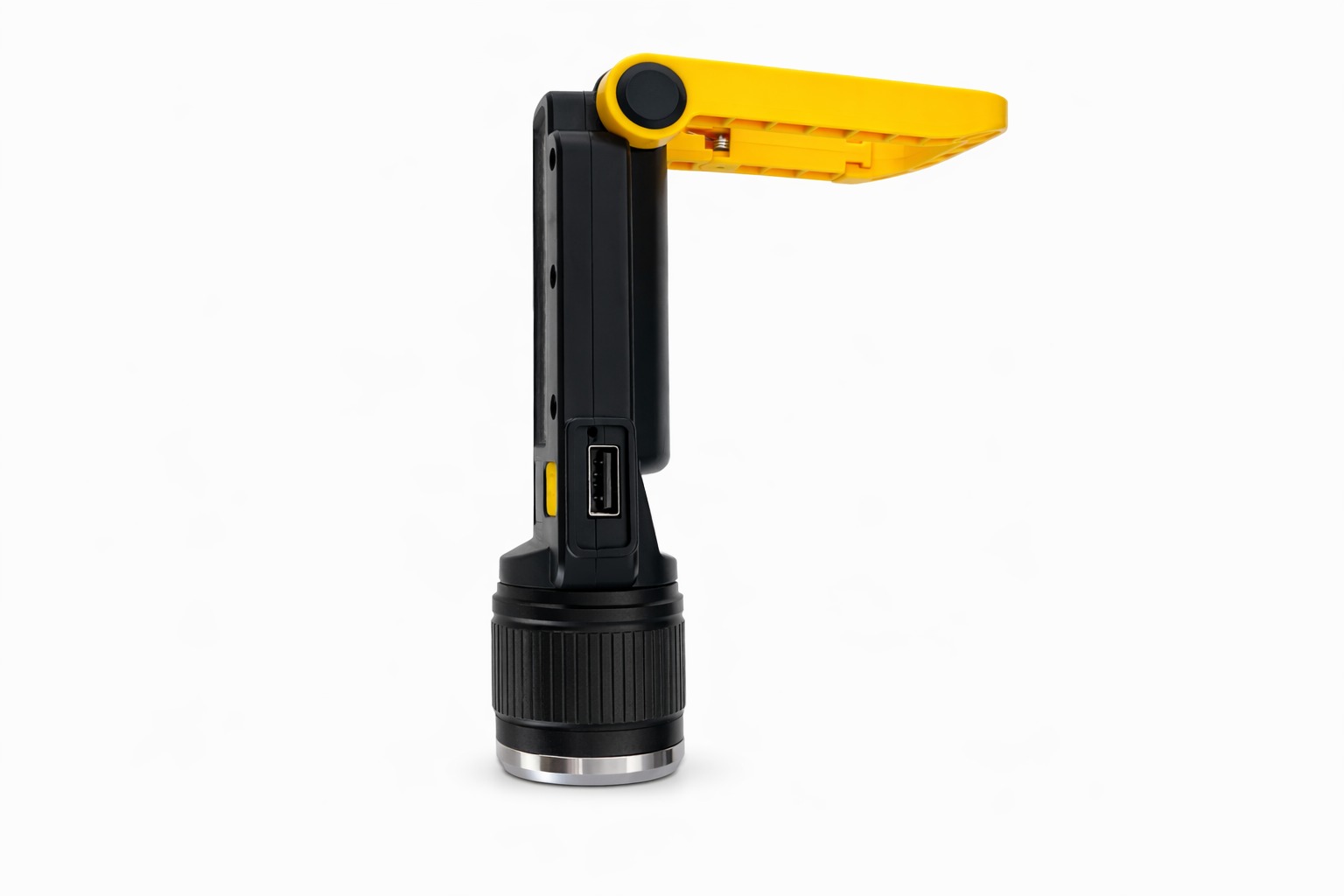 La herramienta definitiva para el trabajo duro y la aventura. Esta linterna de búsqueda de alto rendimiento no solo domina las distancias, sino que es un sistema completo de energía y luz. Con su tecnología de refracción lateral y su capacidad de carga solar, estarás preparado para cualquier desafío, desde una expedición nocturna hasta una emergencia prolongada.